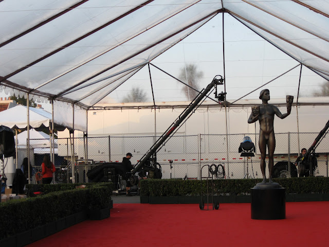 Hi all! I just wanted to share some photos I took before and during the Screen Actors Guild Awards, which was last Sunday at the Shrine Expo Hall in Los Angeles. It was an incredible experience and one I will never forget. I enjoyed watching the place transform! The giddy chick you see sitting inside the showroom is yours truly!