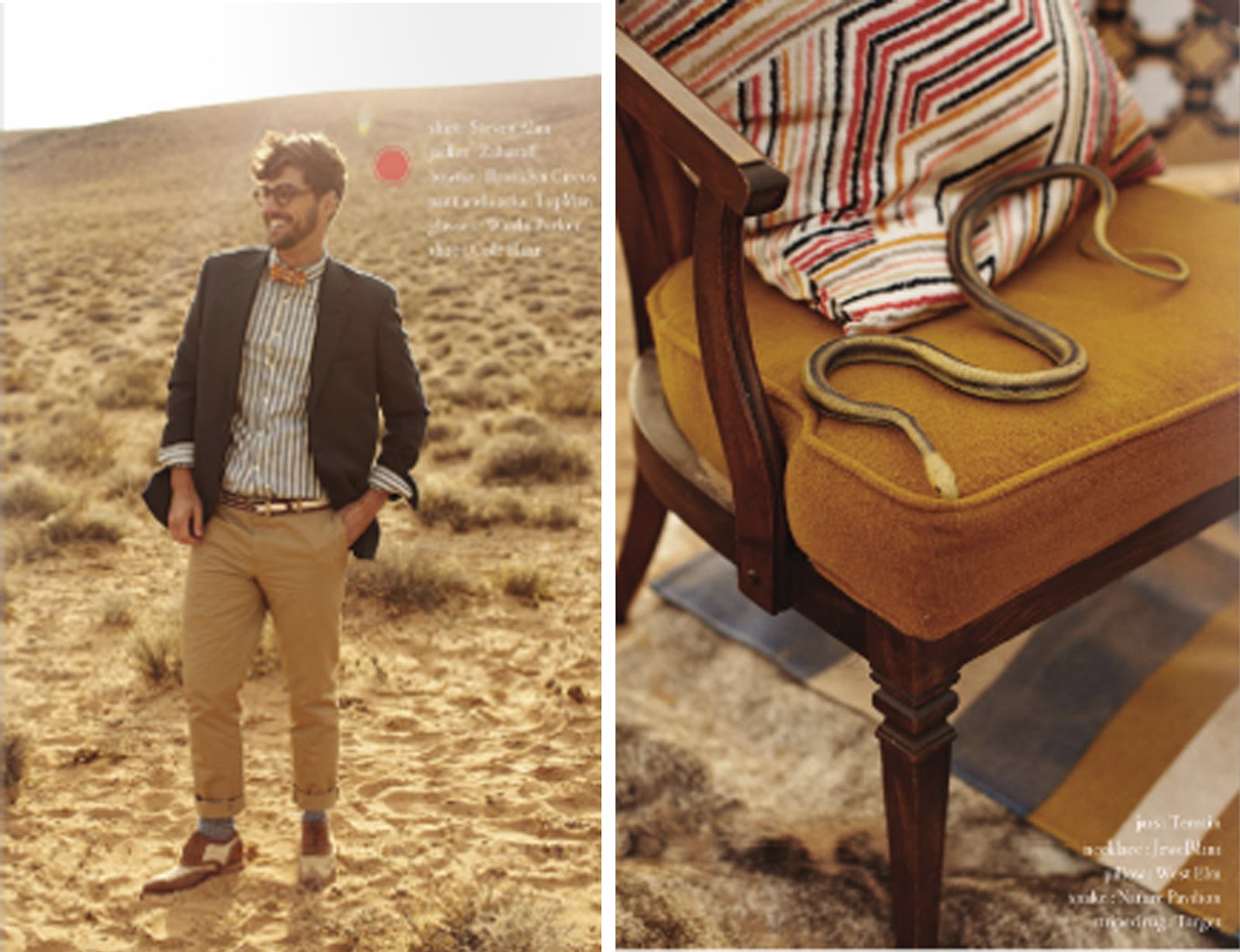 I love the story Meagan helped create. Everything about the fashion shoot -- the clothes, the books, the table setting, the living room and bedroom furniture, and even the snakes -- was visually stunning. It makes me want to gather up my friends, head to the Vegas desert and have a similar party (sans snakes). Who's with me?!? (Check out the cool behind-the-scenes video below)